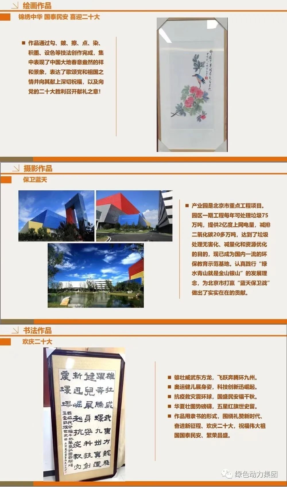 集团各单位书画、摄影爱好者积极参与,创作了一批优秀的参赛作品。活动中,集团工会共征集到16个单位的32件作品,其中书法4件、绘画8件、摄影16件、手工艺品4件。各单位报送的作品围绕“喜迎二十大”这一主线,通过书写诗词联赋、绘画美好寓意、记录身边人物和工作场景、以及各种手工艺创作来抒发对祖国的赤子之情和美好祝愿,每一幅参赛作品都浓缩着广大职工投身公司经营发展的身影,诠释着广大职工寻找美、发现美和创作美的能力,更体现了广大职工爱岗敬业、积极向上的良好精神风貌。