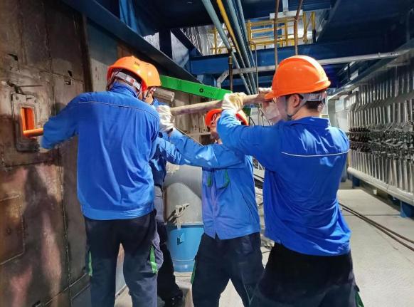 2022年4月9日,章丘项目#2炉燃尽段炉排出现脱落,导致炉排机械负荷受限,锅炉负荷骤降。经研讨后最终确定采用临时压火快速抢修的检修方案,待炉温降至450℃以下时,检修人员身着防烫工作服、系安全带,进入燃尽段炉排脱落处,拆卸损坏炉排并完成炉排片的安装。整个操作流程环环相扣,必须要在4小时内完成。方案确定后,设备部商朝俊克服高温、勇挑重担,顺利更换脱落的4块炉排及风室磨损严重的2个拖轮,维修时间比计划缩短半个小时,保障了项目的正常生产与运营。
