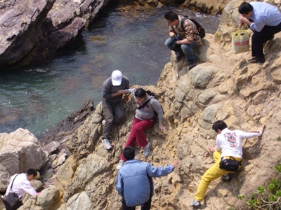 深圳东西冲海岸线是深圳最美丽、最经典的海岸徒步线路,被《国家地理杂志》评为中国最美的十大徒步线路之一。此次活动我们选择的路线是从东往西沿海岸线穿越,历经岛屿、礁石、海蚀岩、峭壁等不同海积海蚀地貌,大部分路段都不是能正常行走的道路,很多时候需要手脚并用才能前进,而且途中没有任何交通工具可以借助。穿越过程中,大家结伴前行,充分发扬团队协作精神,互帮互助,克服了恐惧、骄阳、饥饿、口渴、疲惫、抽筋甚至伤痛等困难,历经4个多小时终于到达目的地。